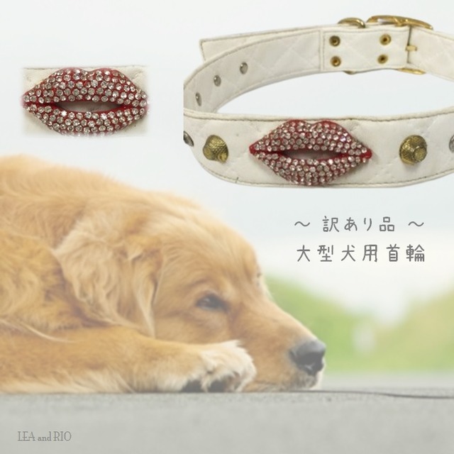 【訳あり】 首輪 Y87 大型犬 ホワイト リップモチーフ 唇 ペット お出掛け おしゃれ 犬 猫 ペット ドッグウェア 返品交換不可