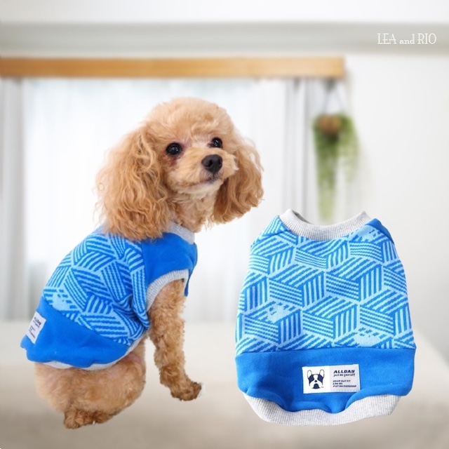 ★新作★トップス AD1 Tシャツ シャツ ニット ブルー 青 幾何学模様 犬 猫 ペット ペットウェア おしゃれ かわいい 服 犬の洋服 猫の洋服 犬の服 猫の服 小型 dog ドッグウェア 送料無料