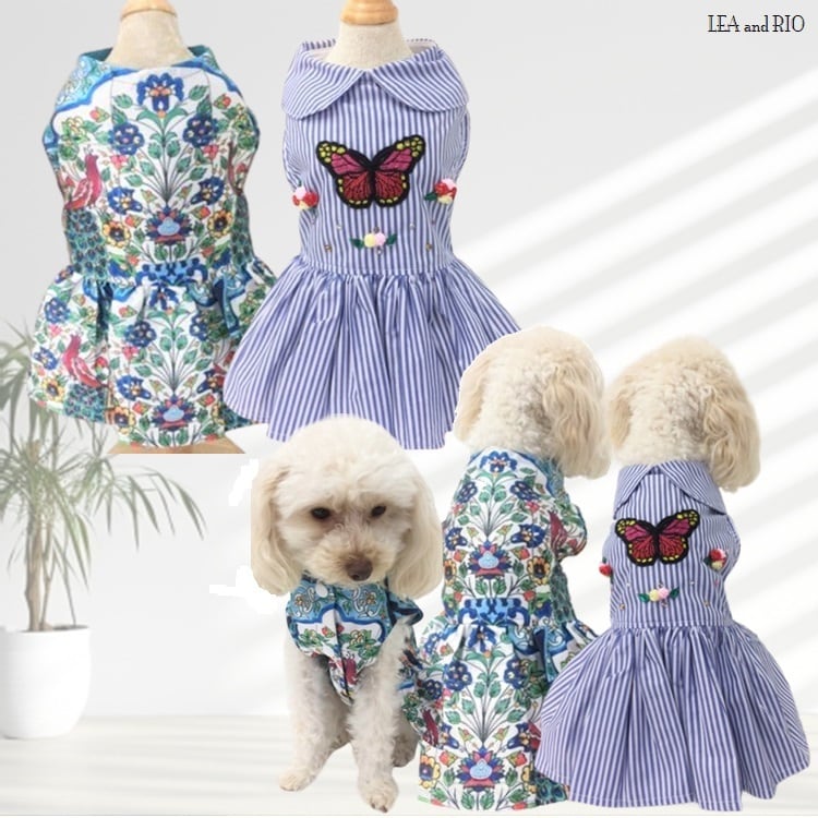ワンピース P70 P71 ドレス ドッグウェア 春夏 ストライプ 花柄 ボタニカル ハンドメイド ドッグウエア dog 犬 猫 ペット 服 犬の服 猫の服 フラワー 花 ゆめかわ かわいい おしゃれ ナチュラル 小型犬 返品交換不可