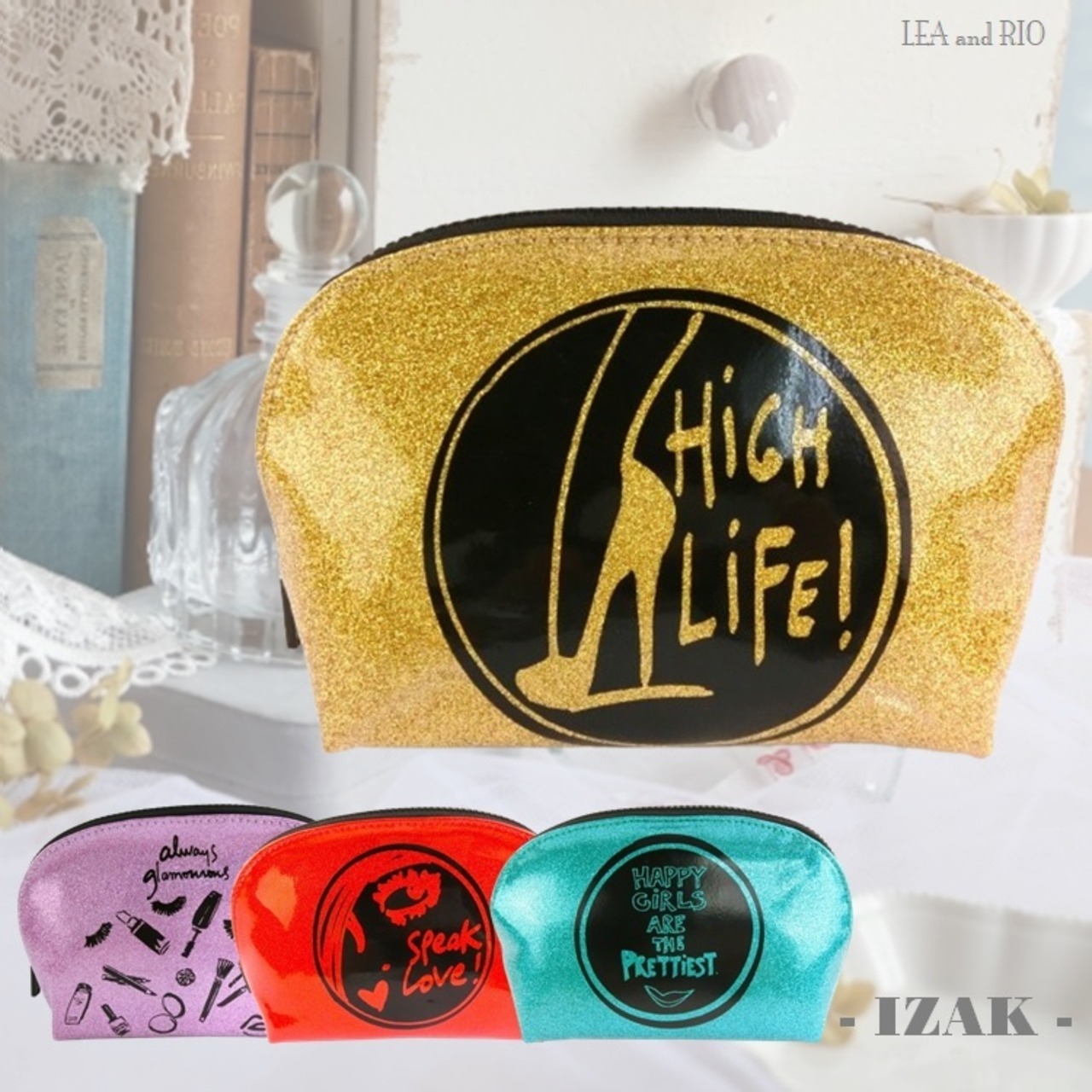 ミニポーチ IZAK アイザック IZ1 IZ2 IZ3 IZ4 ポーチ 化粧ポーチ 小物入れ メイクポーチ コスメポーチ マチあり ゴールド グリッター コスメポーチ ビビットカラー