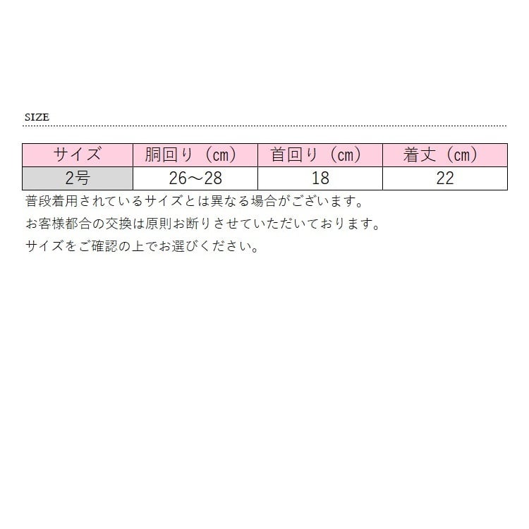 サイズ 胴回り 首回り 着丈(適応サイズ)