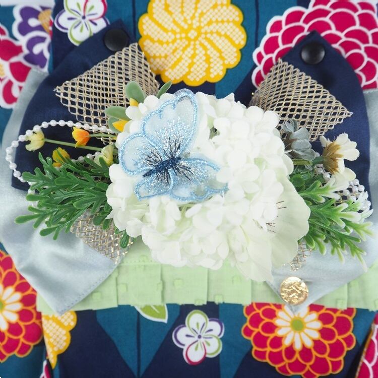 ボリューミーな帯飾りには大きなフラワーモチーフ