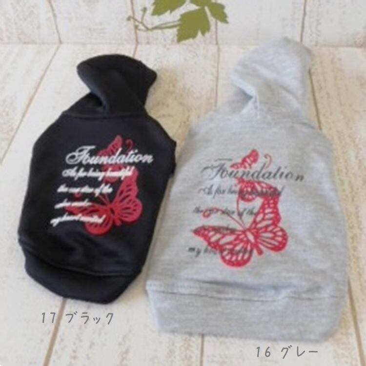 トップス DDW16 DDW17 トレーナー パーカー フード付き 2カラー バタフライ 蝶 dog ウェア ドッグ ウェア ドッグウエア 犬 猫 ペット 服 犬服 犬洋服 犬の洋服 猫服 猫洋服 猫の洋服 洋服 小型犬 中型犬 かわいい 可愛い おしゃれ 返品交換不可
