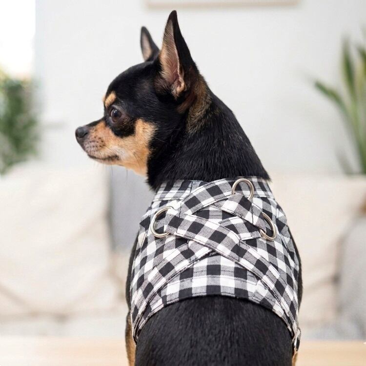 ハーネス DDO36 洋服のようなハーネス 胴輪 チェック モノトーン 散歩 お出掛け 引っ張り防止 小型犬 犬 猫 ペット 服 犬服 返品交換不可
