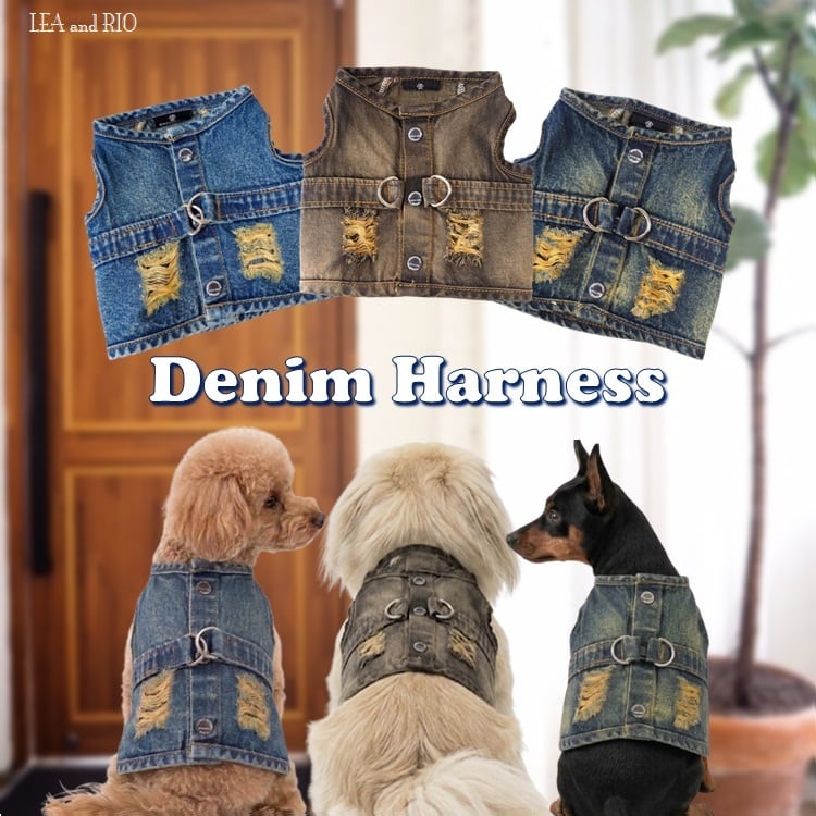 ハーネス DDO39 DDO40 DDO41 洋服のようなハーネス 胴輪 デニム 散歩 お出掛け 引っ張り防止 小型犬 犬 猫 ペット 服 犬服 返品交換不可