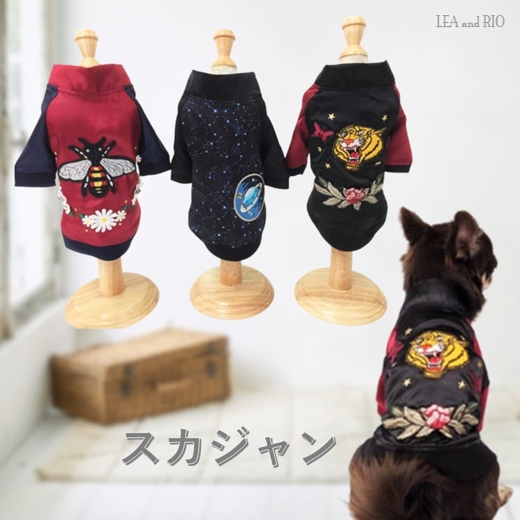 スカジャン P56 P76 P77 アウター トップス ハンドメイド 虎 花 宇宙 バイカラー タイガー スペース 惑星 ギャラクシー フラワー 蜂 犬 猫 ペット 服 犬服 猫服 犬洋服 猫洋服 洋服 小型 おしゃれ かわいい 返品交換不可 | MOANA