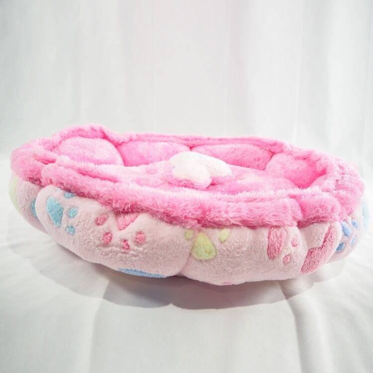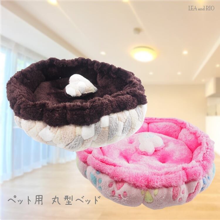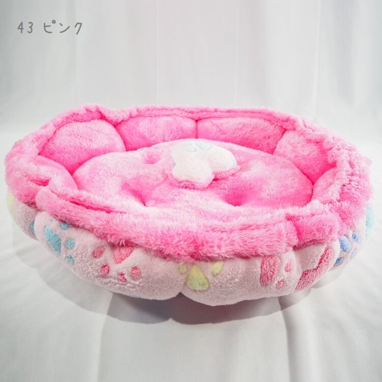 ベッド【XLサイズ】MA41 MA43 ベージュ ピンク 丸型 犬 猫 ペット モザイク 肉球 足跡 フットスタンプ ハート 返品交換不可