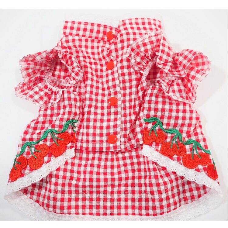 チュニックワンピース P344 P345 ドレス ワンピース りんご さくらんぼ レッド ピンク ギンガムチェック マジックテープ レース パピー 小型犬 犬 猫 ペット 服 犬服 犬の服 猫服 猫の服 おしゃれ かわいい お出かけ 返品交換不可