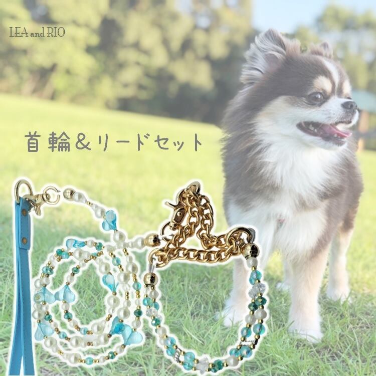 小型犬用のリードとお揃いの首輪のセット