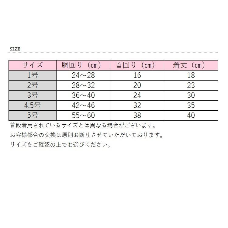 サイズ  胴回り  首回り  着丈