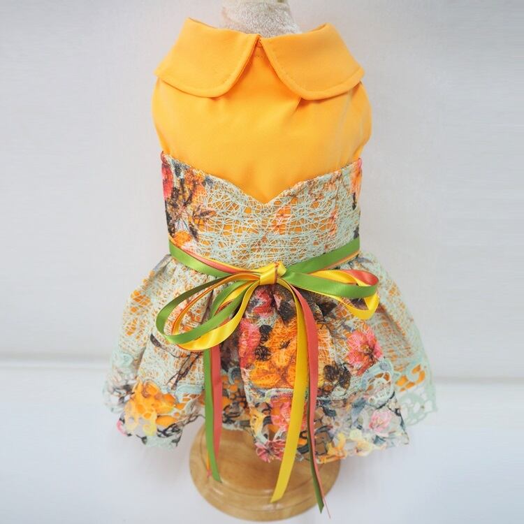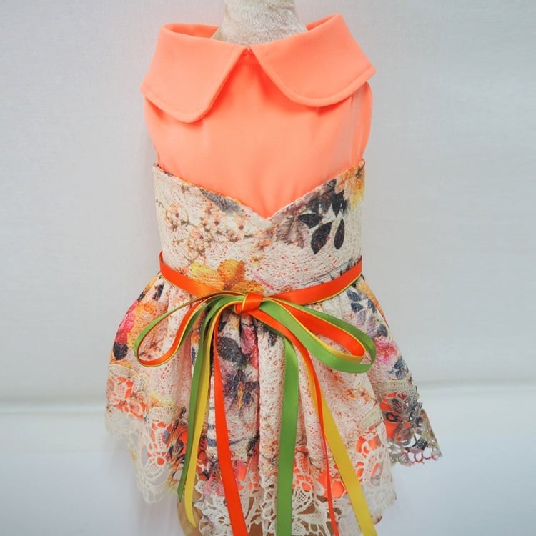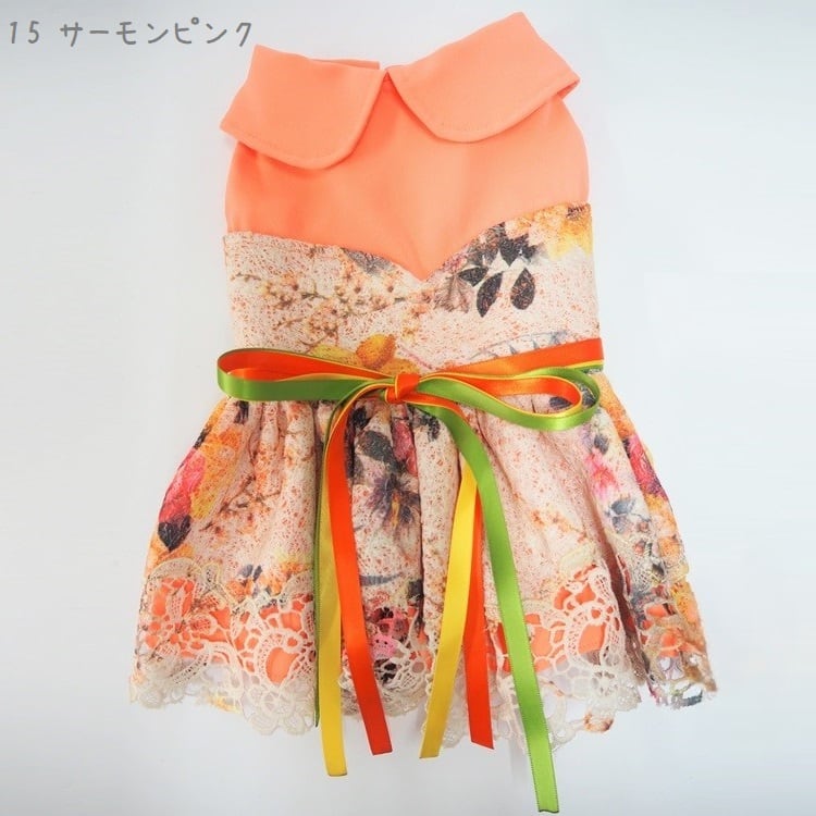 ワンピース PE15 PE16 サーモン ピンク オレンジ イエロー ワンピ ドレス ドッグウェア 犬 猫 ペット 服 犬服 かわいい おしゃれ リボン レース 大人 可愛い ティアード イベント パーティー 撮影会