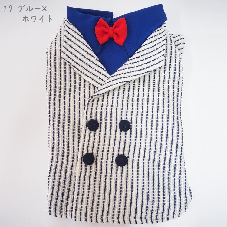 タキシード PE19 PE21 PE22 PE23 トップス ベスト風 スーツ フォーマル ブルー ベージュ ブルーシルバー レッド ブラック 蝶ネクタイ リボン チェック柄 ドッグウェア 犬 猫 ペット 服 犬服 猫服 犬の服 猫の服 おしゃれ かっこいい クール シャツ | MOANA