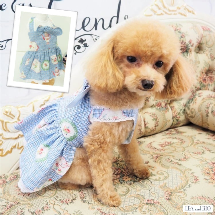 ワンピース P296 Sweets ハンドメイド モチーフ スカート ブルー チェック柄 りぼん リボン キャンディ 花 犬 猫 ペット 犬服 犬の服 犬洋服 犬の洋服 洋服 ドッグウェア ドッグウエア 女の子 小型犬 ビーズ おしゃれ かわいい 可愛い dog