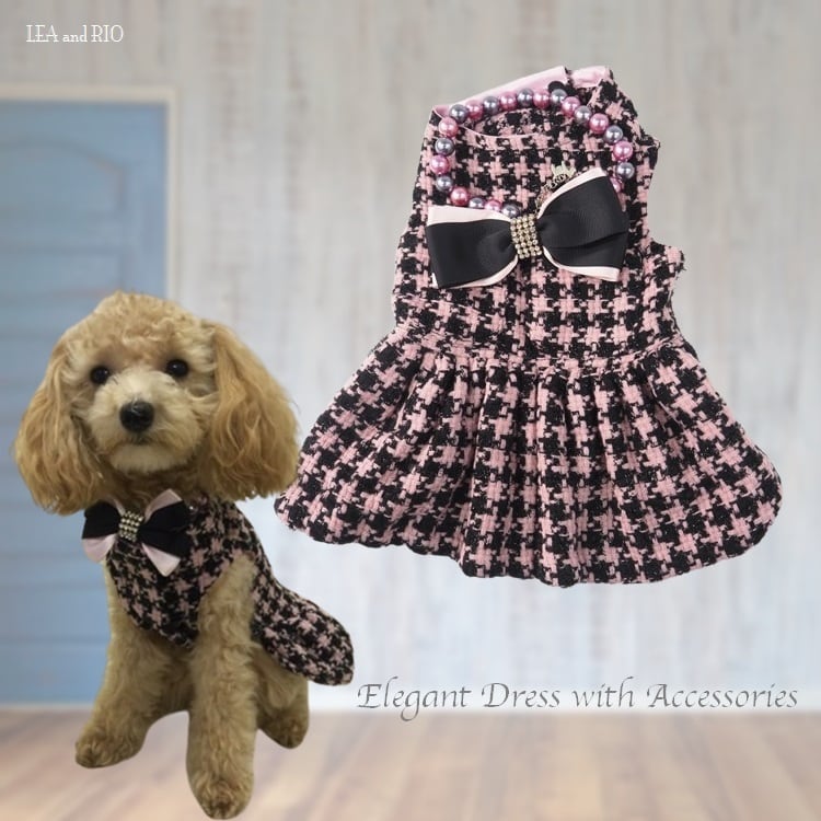 ワンピース P32 犬服 アクセサリー リボン 蝶ネクタイ 千鳥格子 ピンク ブラック ツイード調 ドッグウエア dog 犬 猫 ペット 服 犬服 猫服 おしゃれ かわいい 犬の服 猫の洋服 小型犬 小型 ギフト プレゼント 返品交換不可
