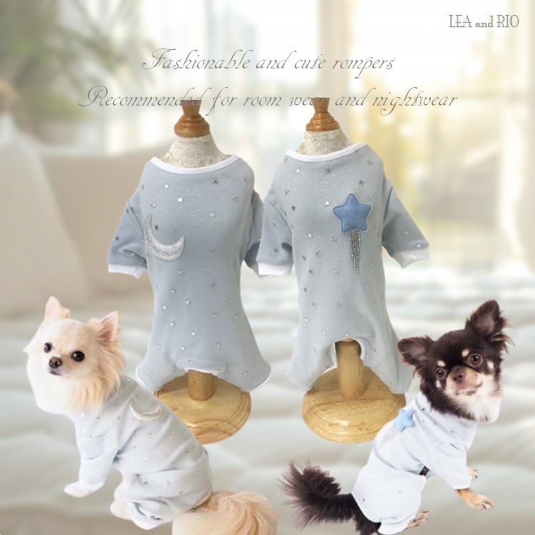 ロンパース P98 P99 カバーオール つなぎ ツナギ ドット 星 月 キラキラ コミカル かわいい リンク コーデ ドッグウェア ドッグウエア dog 犬 猫 ペット 服 犬服 猫服 犬の服 猫の服 小型犬 返品交換不可 | MOANA