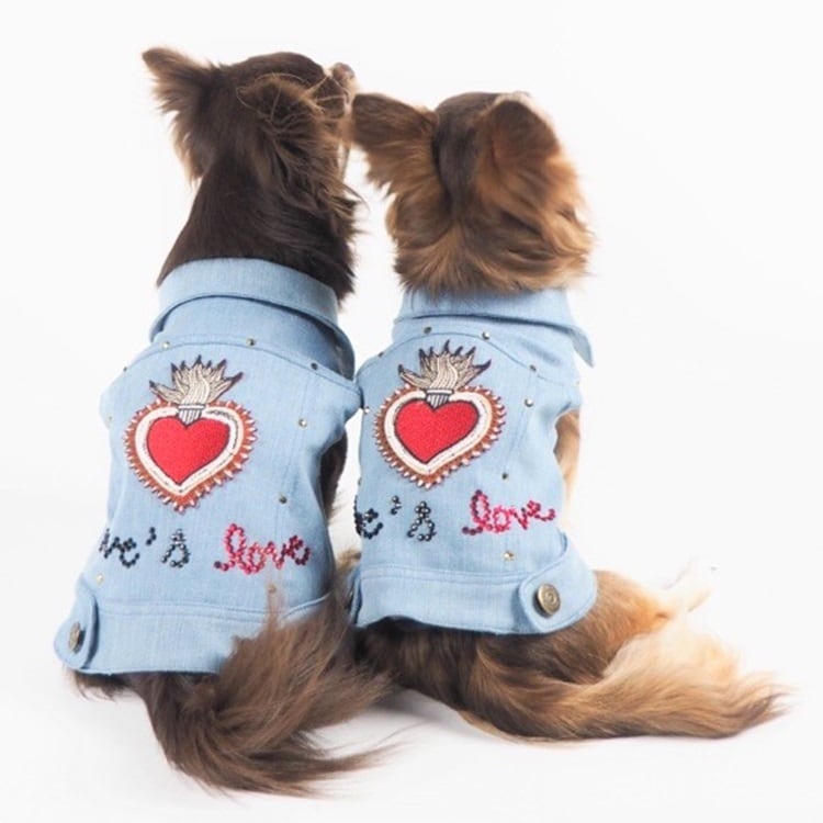 トップス P150 デニム ドックウェア ジャケット ハンドメイド アウター ライト ハート キラキラ ビジュー ストーン ドッグウェア dog 犬 猫 ペット 服 犬服 オシャレ クール 小型犬 リンク コーデ 返品交換不可 | MOANA