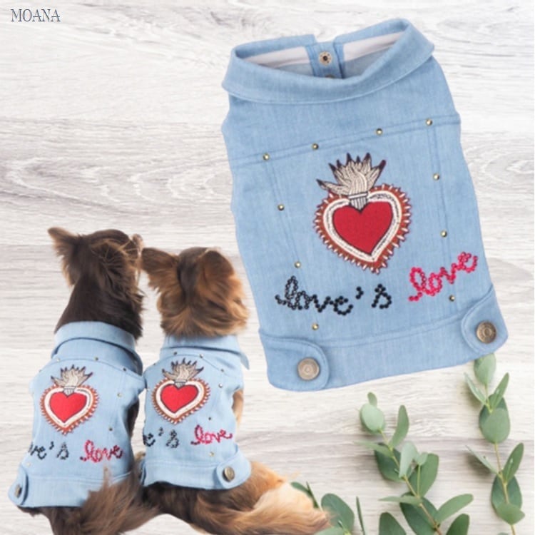 トップス P150 デニム ドックウェア ジャケット ハンドメイド アウター ライト ハート キラキラ ビジュー ストーン ドッグウェア dog 犬 猫 ペット 服 犬服 オシャレ クール 小型犬 リンク コーデ 返品交換不可