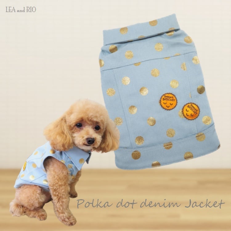 トップス P386 デニム ハンドメイド ジャケット アウター ゴールド ドット ビスケット アップリケ ドッグウェア ドックウェア dog 犬 猫 ペット 服 犬服 猫服 犬の服 猫の服 オシャレ クール 小型犬 送料無料 返品交換不可