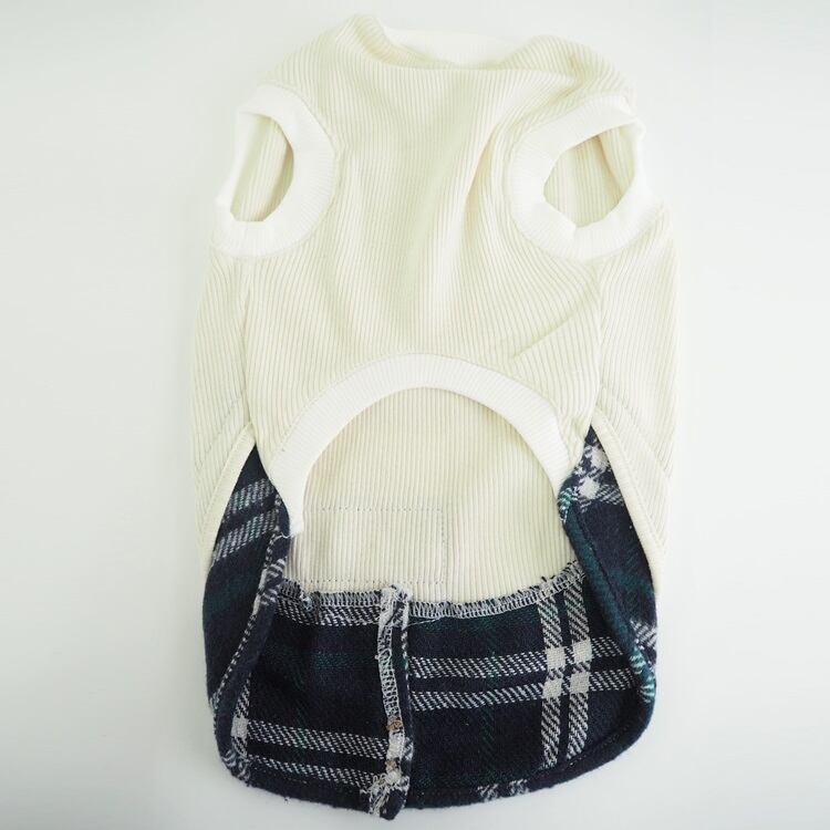 トップス J43 J44 ライトグリーン ダークグリーン チェック マフラー付き 重ね着風 シンプル ナチュラル カジュアル 上品 ドッグウェア dog 犬 猫 ペット 服 犬服 オシャレ かわいい 小型犬 返品交換不可