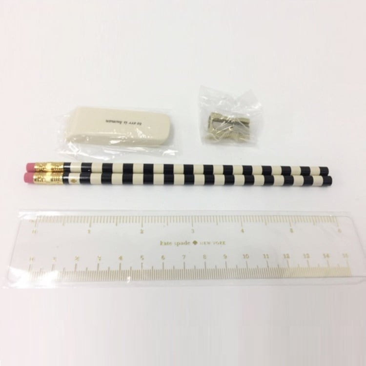 鉛筆2本、消しゴム、定規、鉛筆削りがセットになっています。