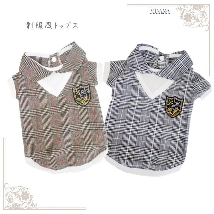 トップス YC44 YC45 制服風 グレー ブラウン コスチューム コスプレ 仮装 女の子 男の子 犬 犬服 小型 猫 服 洋服 ペット dog ドッグウェア おしゃれ かわいい 返品交換不可