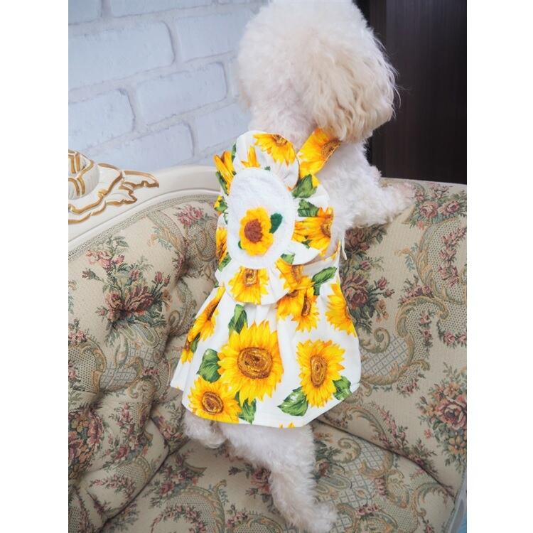 ワンピース P431 P432 ひまわり ハンドメイド ブルー ホワイト イエロー 花柄 ドッグウェア 春夏 ドッグウエア ドッグ ウェア 犬 猫 ペット 服 犬服 猫服 シンプル 犬洋服 猫洋服 春 夏 洋服 小型 おしゃれ かわいい 送料無料 返品交換不可