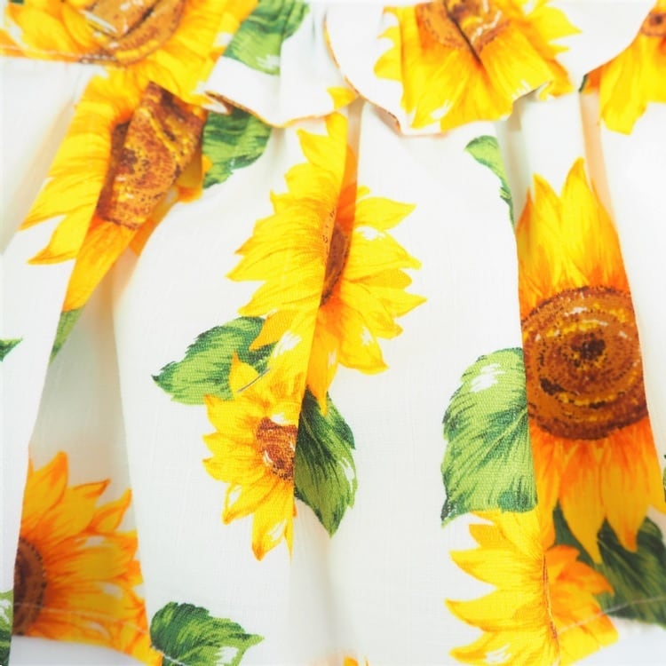 インパクトのある大きなひまわり柄が真夏の太陽に映える一着です。