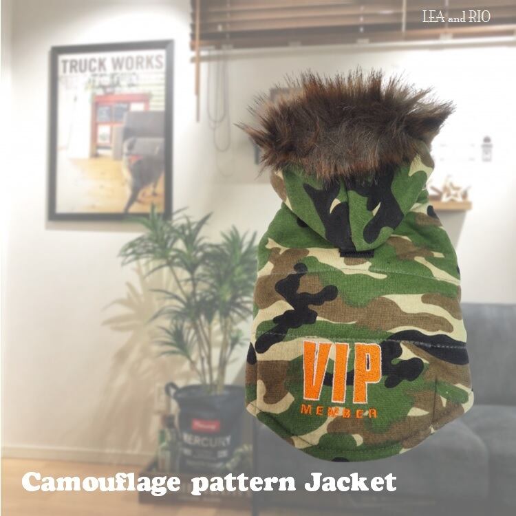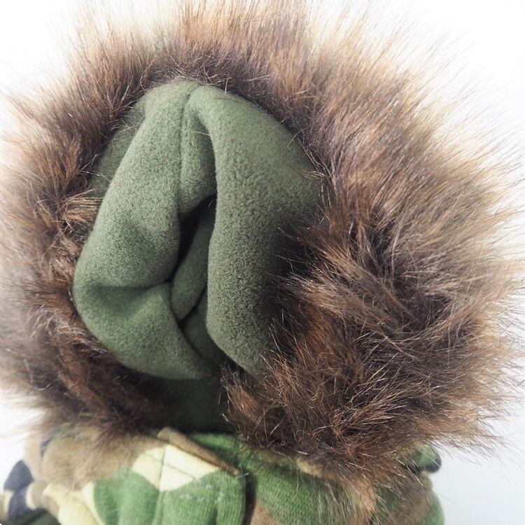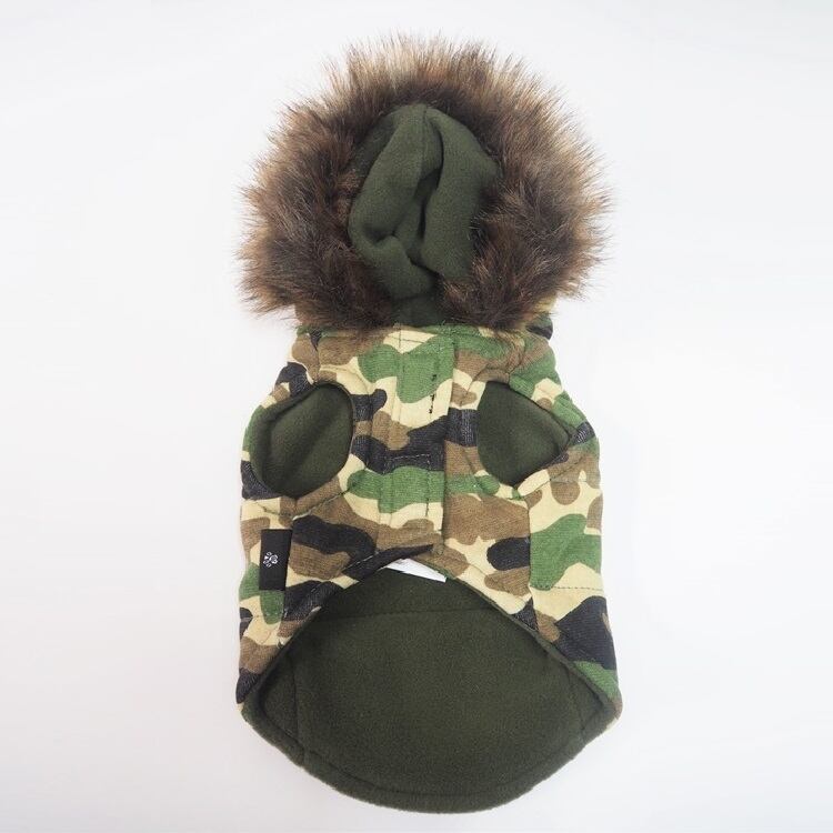 ジャンパー DDW59 アウター コート カモフラ フード フェイクファー リード穴付き フリース あったか 小型犬 犬 猫 ペット 服 犬服 返品交換不可