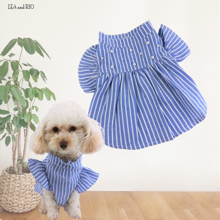 ワンピース P129 犬服 猫服 ドックウェア ドッグウエア ブルー 青 ハンドメイド 小型犬 カントリー ガール ナチュラル シンプル デニム調 ウェア トップス 犬 猫 服 犬洋服 洋服 女の子 小型 小型犬 おしゃれ かわいい プレゼント ギフト 返品交換不可