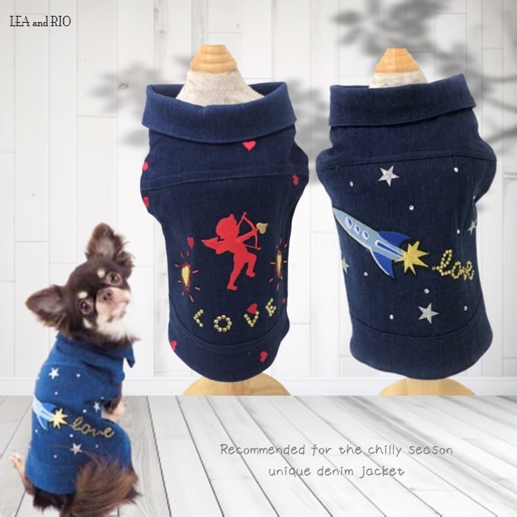 トップス P93 P97 デニム アウター ジャケット ダーク スター エンジェル ハート キラキラ ビジュー ストーン ドッグウェア ドックウェア dog 犬 猫 ペット 服 犬服 猫服 犬の服 猫の服 オシャレ クール 小型犬 リンク コーデ 返品交換不可 | MOANA