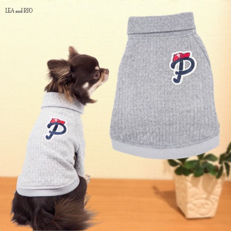 トップス P139 ニット ドッグウェア ドッグウエア ドックウェア セーター アップリケ dog 犬 猫 ペット 服 犬服 猫服 犬の服 猫の服 かわいい シンプル ルーム カジュアル デイリー 灰色 グレー 小型犬 パステル ハンドメイド 返品交換不可 | MOANA