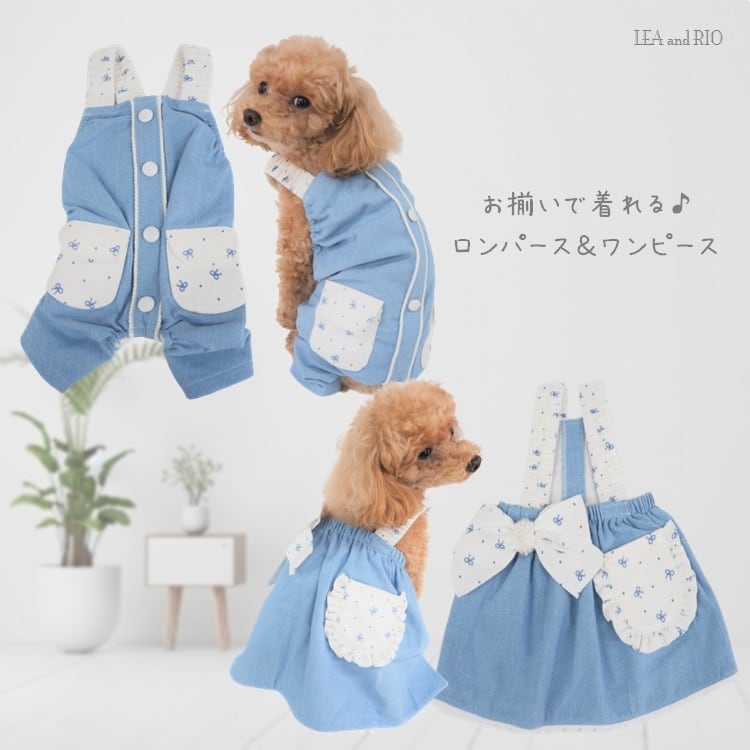 ワンピース ロンパース P657 P660 ワンピ ドレス つなぎ カバーオール りぼん カジュアル おしゃれ かわいい 爽やか 春 夏 小型犬 ドッグウェア dog cat 犬 猫 ペット 服 犬服 猫服 犬の服 猫の服 返品交換不可