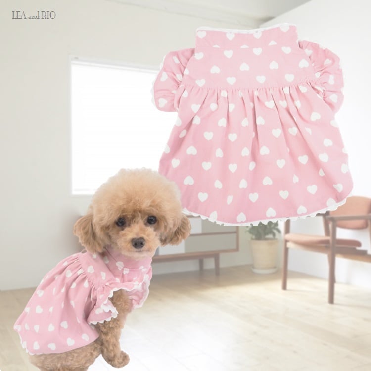 チュニックワンピース P566 ワンピース ドレス ハート ピンク レース 面ファスナー パピー 小型犬 犬 猫 ペット 服 犬服 猫服 犬の服 猫の服 ドッグウェア おしゃれ かわいい お出かけ 返品交換不可