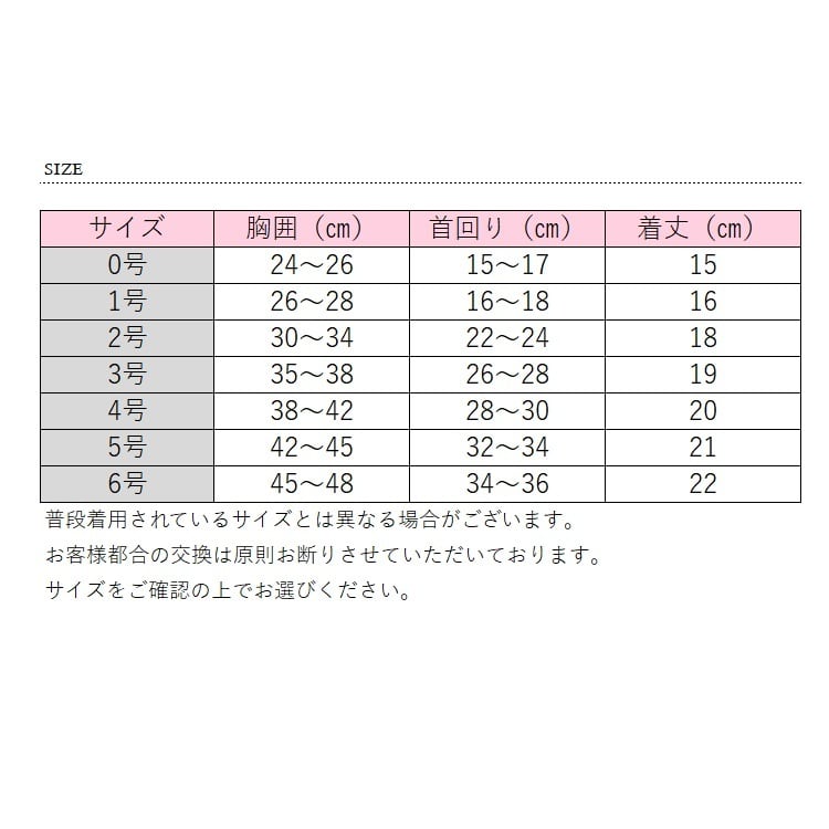 サイズ 胸囲 首回り 着丈