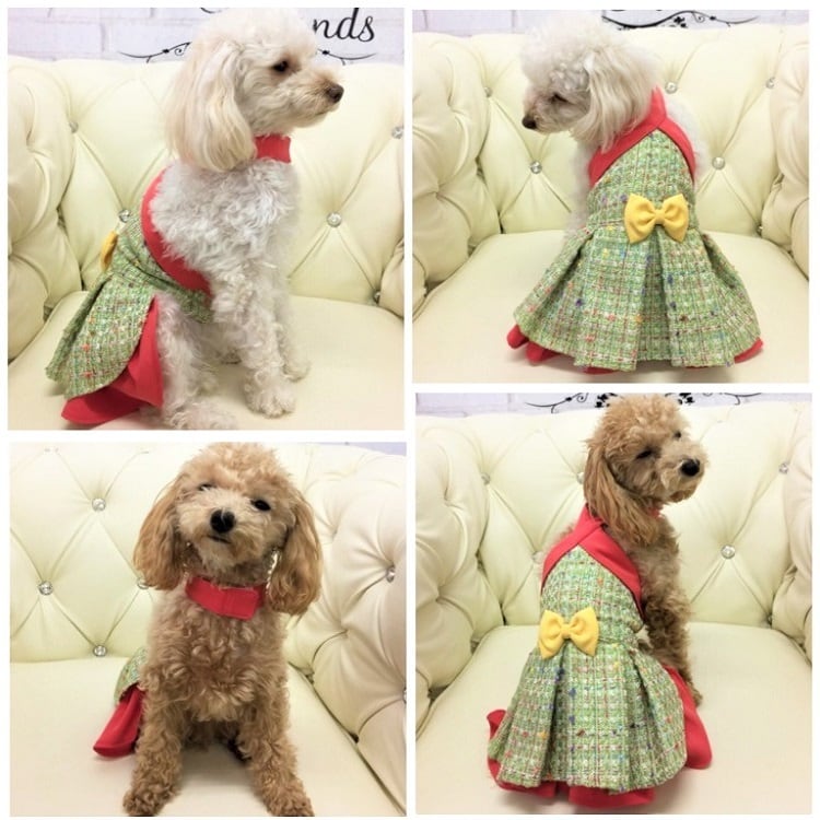 ワンピース PE2 PE4 PE17 ドレス スカート リボン ツイード風 犬服 ドッグウェア ドックウェア ドッグウエア グリーン ピンク ブラック ホワイト ドッグ ウェア トップス 犬 猫 ペット 服 犬の服 猫の服 犬洋服 猫洋服 洋服 小型 小型犬 おしゃれ かわいい 可愛い | MOANA