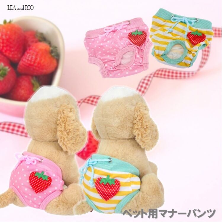 マナーパンツ iro145 iro146 サニタリー マナーウェア 犬服 ドッグウェア 老犬 ピンク イエロー 水玉 ボーダー いちご 苺 ストロベリー ドッグ ウェア dog 犬 猫 女の子 ペット 散歩 服 生理 オムツ カバー 犬服 猫服 犬の服 猫の服 返品交換不可 | MOANA