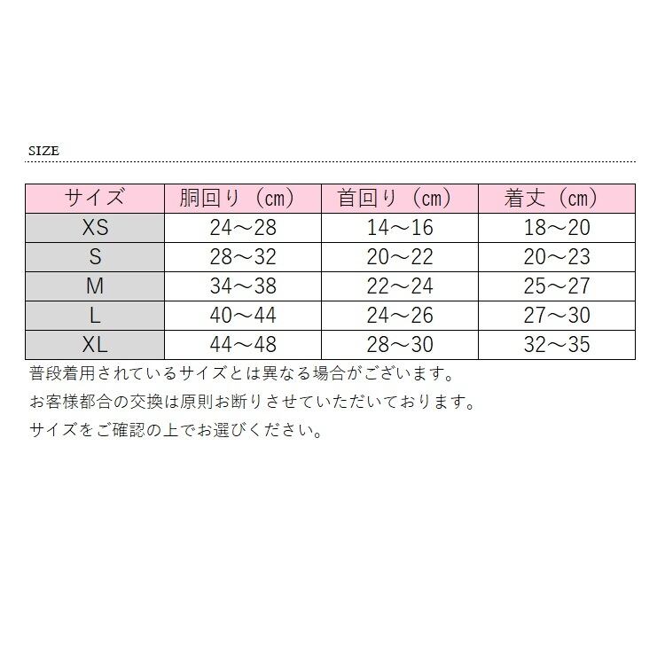 サイズ 胴回り 首回り 着丈(ヌード寸)