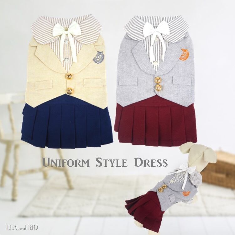 ワンピース DD137 DD138 ドレス スカート 制服風 フォーマル リボン ストライプ ドッグウェア 犬 猫 ペット 服 犬服 猫服 犬の服 猫の服 おしゃれ かっこいい クール シャツ 返品交換不可 | MOANA