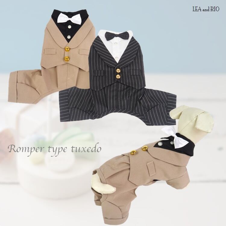 トップス DD135 DD136 タキシード スーツ フォーマル つなぎ ロンパース パンツ 蝶ネクタイ ストライプ ドッグウェア 犬 猫 ペット 服 犬服 猫服 犬の服 猫の服 おしゃれ かっこいい クール シャツ 返品交換不可 | MOANA