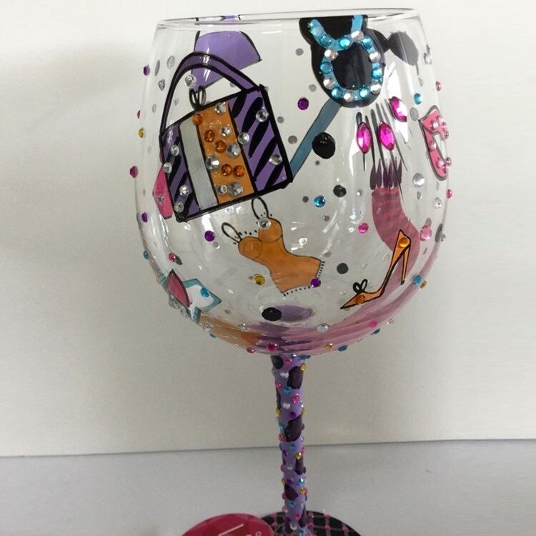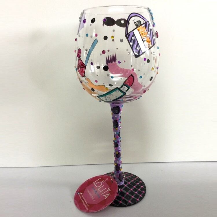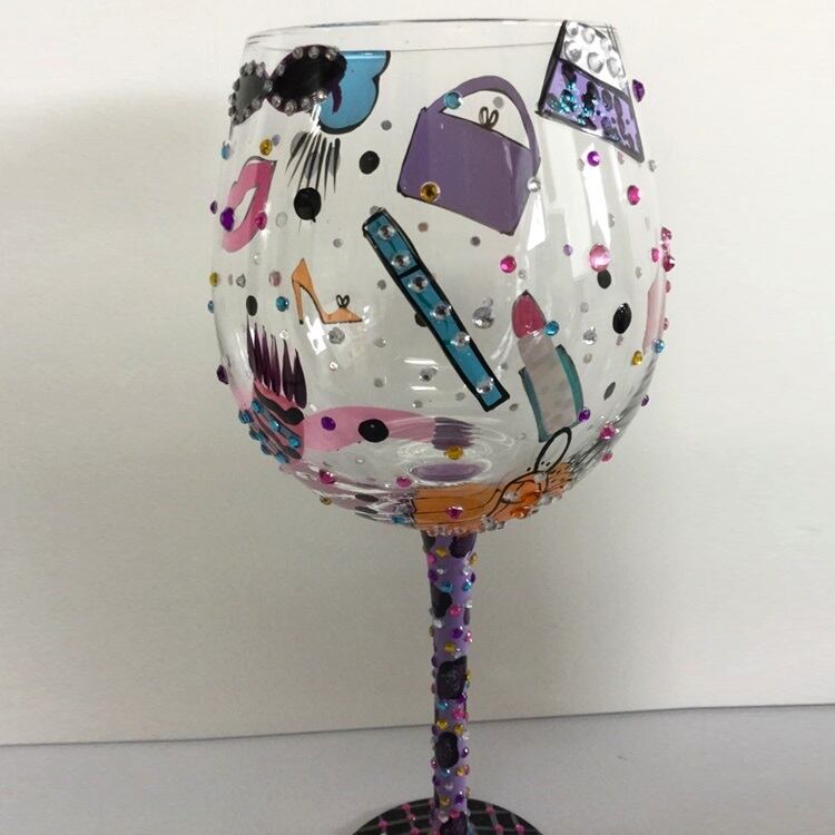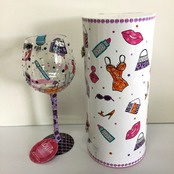 リップマークや靴やバッグなどファッションモチーフが素敵なグラスです。