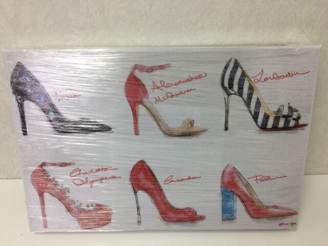 いろんなデザインのハイヒールパンプスをモチーフとした、ハイセンスなアートに仕上がっています。